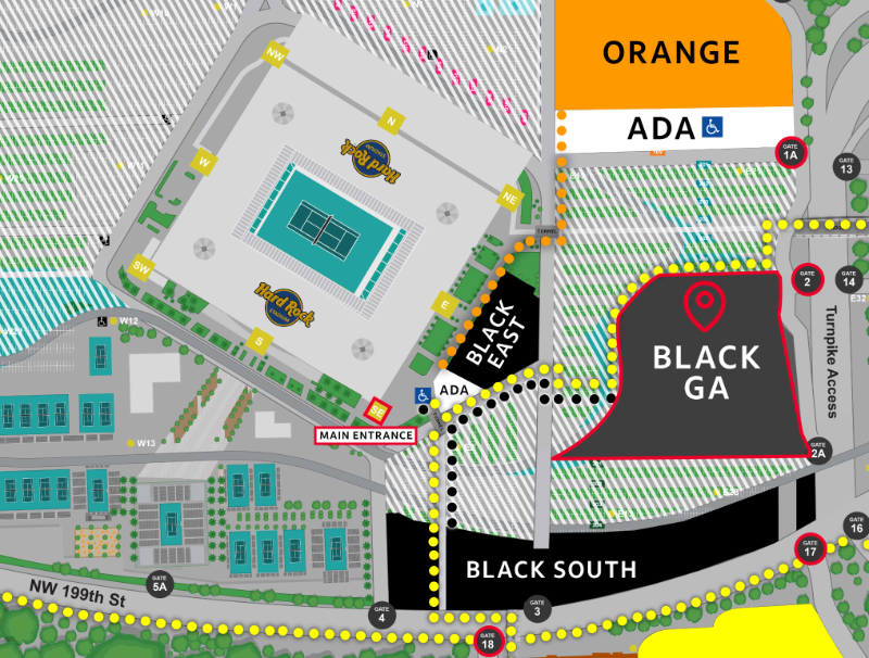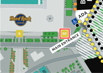 - La entrada se encuentra en la esquina SE del Hard Rock Stadium.